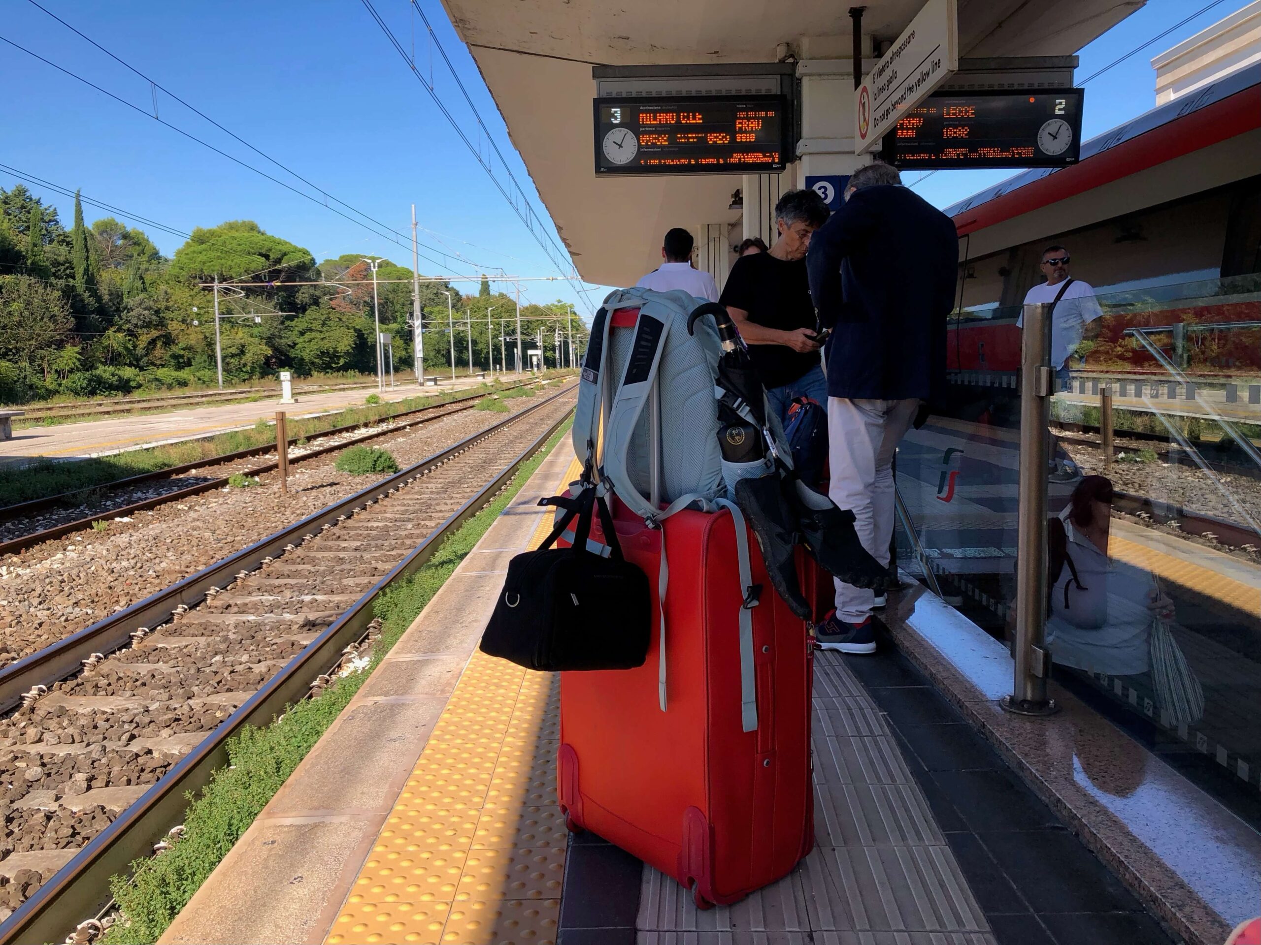 Alle 9:30 siamo in stazione a Pesaro, binario 3, c’è il tempo per un secondo caffè. Anzi di più, perché il treno è in ritardo di mezzora. La valigia è grande e pesante, nel mio vagone non ci sta. La lascio in un vano due carrozze più avanti. Poi mi siedo. Posto 14D.